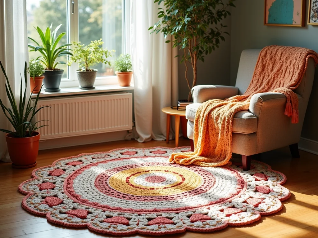 Pois é, um tapete redondo de crochê pode mudar totalmente a vibe de um cômodo. Ele cria um ponto focal e adiciona uma camada de conforto visual e tátil. É uma daquelas peças que mostram cuidado e carinho na decoração.