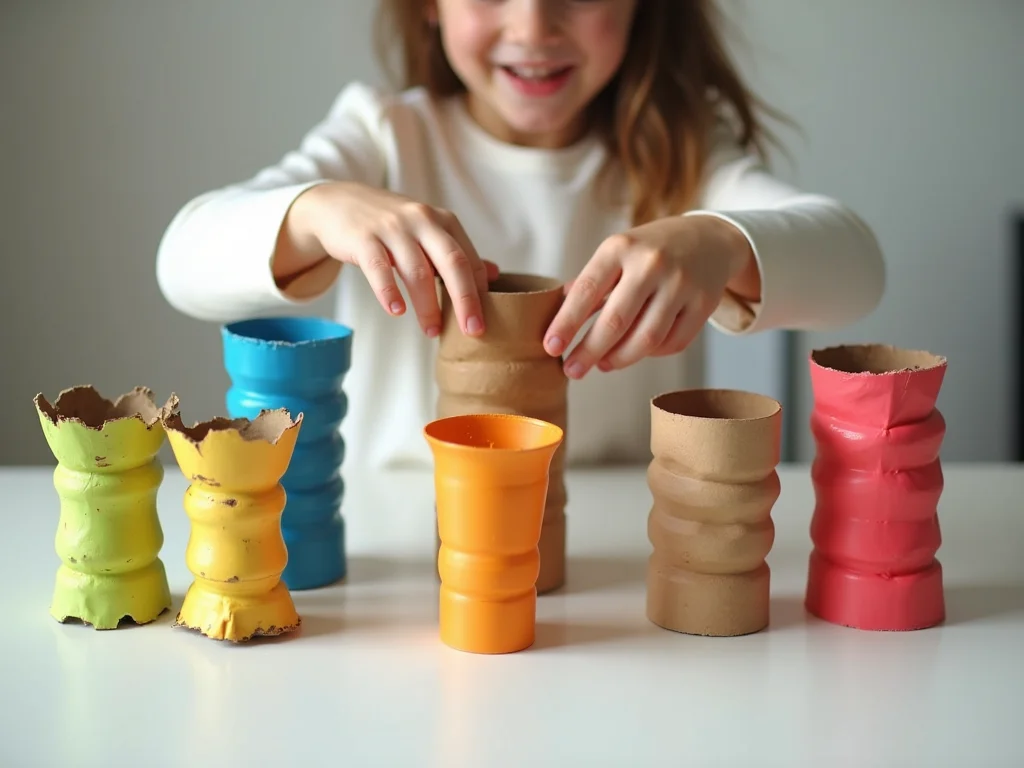“Lista detalhada de 5 brinquedos infantis fáceis de construir em casa utilizando materiais reciclados comuns como garrafas PET, rolos de papel higiênico e copos plásticos, promovendo a sustentabilidade e criatividade.”