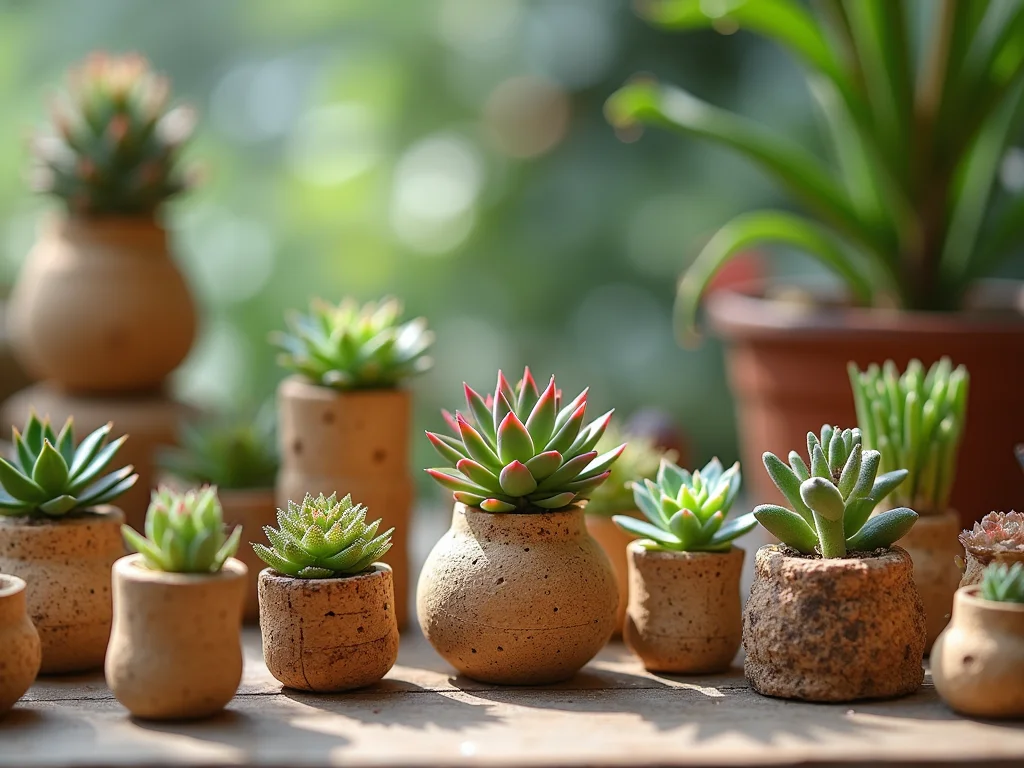 | Pequenos Vasos Suspensos para Cantinhos Especiais | Mini arranjos de suculentas em rolhas, que podem ser pendurados em ganchos ou fios. | Faça um pequeno furo na rolha e encaixe a suculenta com um pouco de terra e musgo. Use um fio de sisal para pendurar. Ótimo para varandas pequenas. |