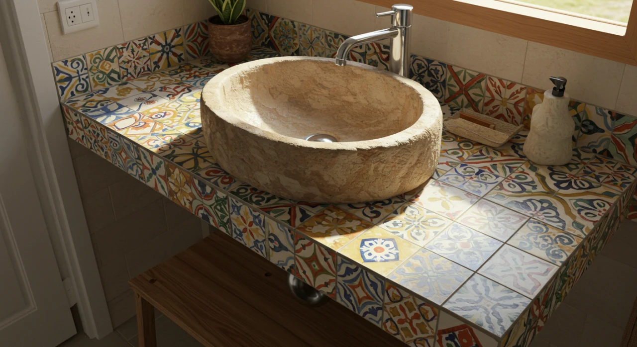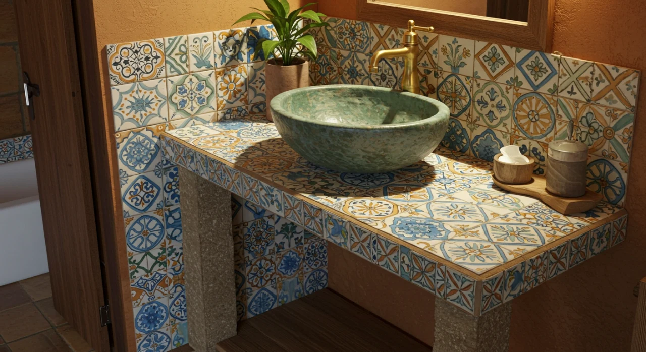 - Azulejos: são resistentes, fáceis de limpar e oferecem diversas opções de cores e estampas.