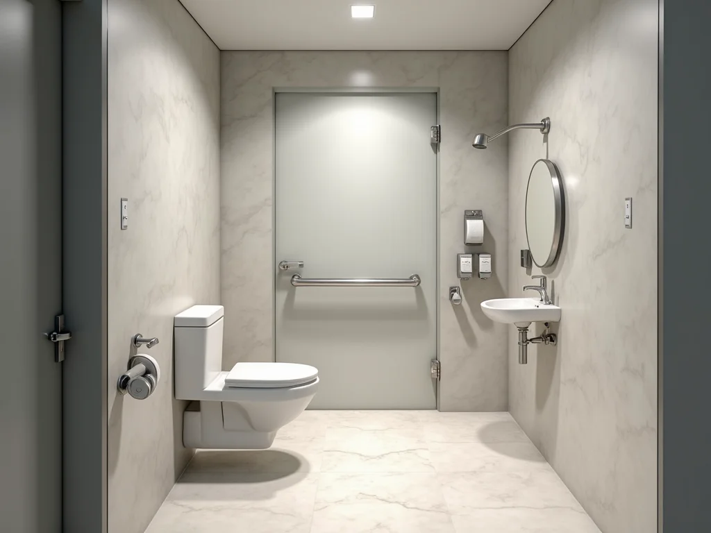 As dimensões são a espinha dorsal de um banheiro acessível. A área de manobra livre, com um diâmetro mínimo de 1,50 metro, é crucial para permitir que uma cadeira de rodas realize um giro completo de 360º sem obstáculos. As portas devem ter uma largura mínima de 80 cm, idealmente com abertura para fora para não invadir o espaço interno e facilitar a saída em emergências. Maçanetas do tipo alavanca são preferíveis por exigirem menos força e destreza. O box do chuveiro, com dimensões mínimas de 90 cm x 95 cm, garante espaço suficiente para movimentação e para a instalação de um banco articulado, facilitando o banho.