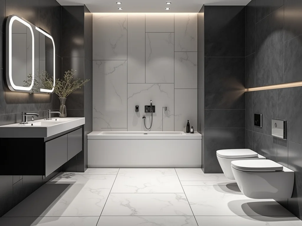 Porcelanato Acetinado: A Base Segura e Elegante para Seu Banheiro Preto e Branco