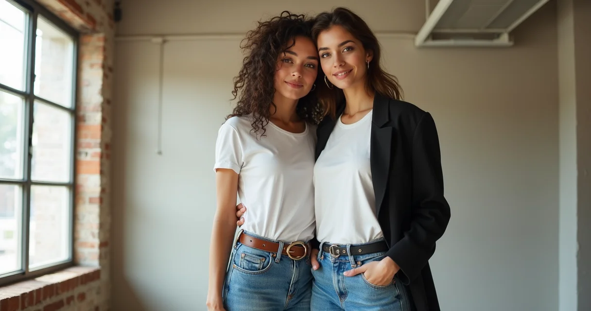 • Dica 2: O cinto certo define o look. Com a cintura alta da mom jeans, um cinto fino de couro realça a cintura sem cortar o corpo. Já na slouchy, evite cintos muito chamativos. O foco deve ser o volume do quadril e a modelagem, não o acessório.