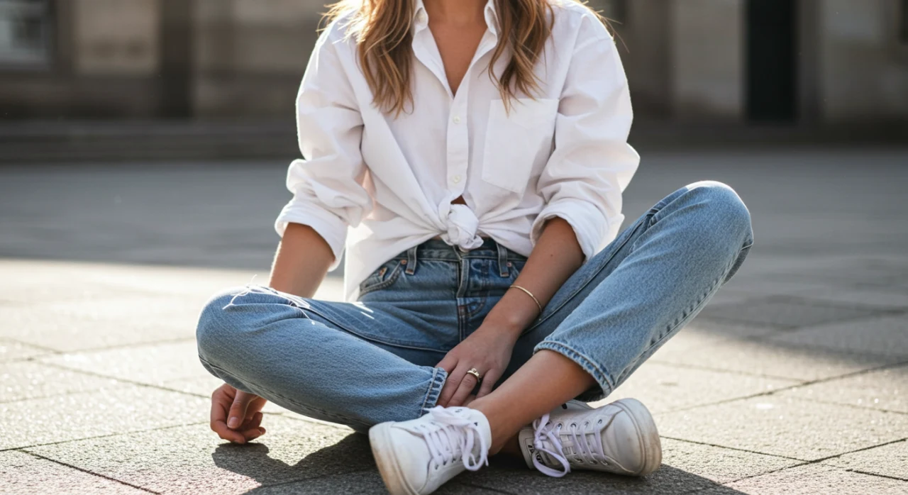 1. Look Casual Chic: Camisa Branca Feminina com Jeans e Tênis