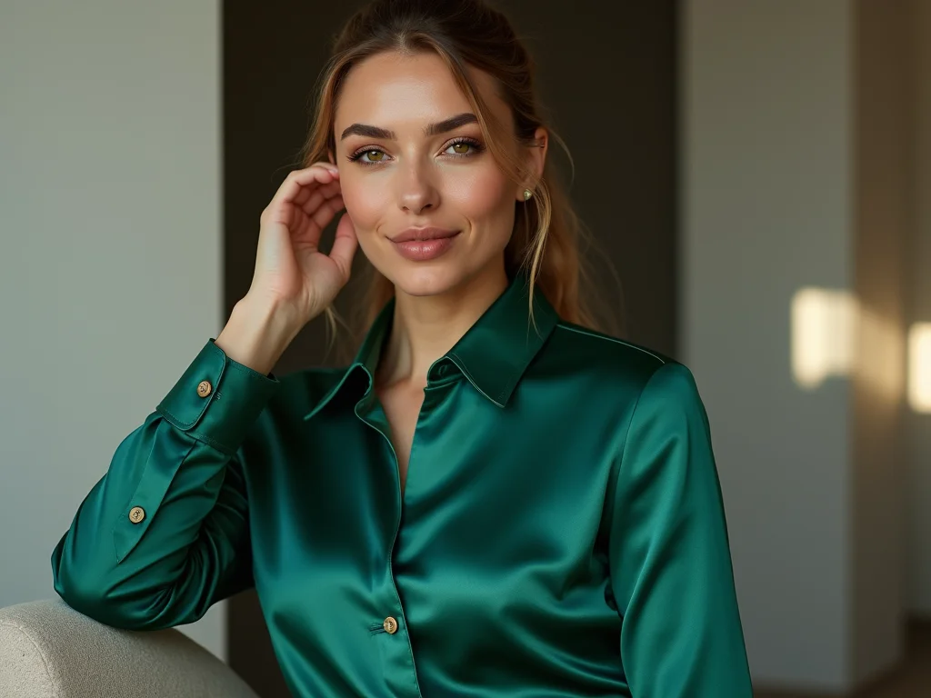 Para a noite, a camisa de cetim ganha ainda mais força. Eu gosto de combiná-la com peças mais estruturadas, como uma saia lápis de couro ou uma calça pantalona de tecido mais pesado. O contraste entre a fluidez do cetim e a rigidez do outro material cria um visual super interessante. E as cores? Tons escuros como preto, vinho ou azul marinho são clássicos, mas um verde esmeralda ou um dourado podem ser incríveis para quem quer ousar.