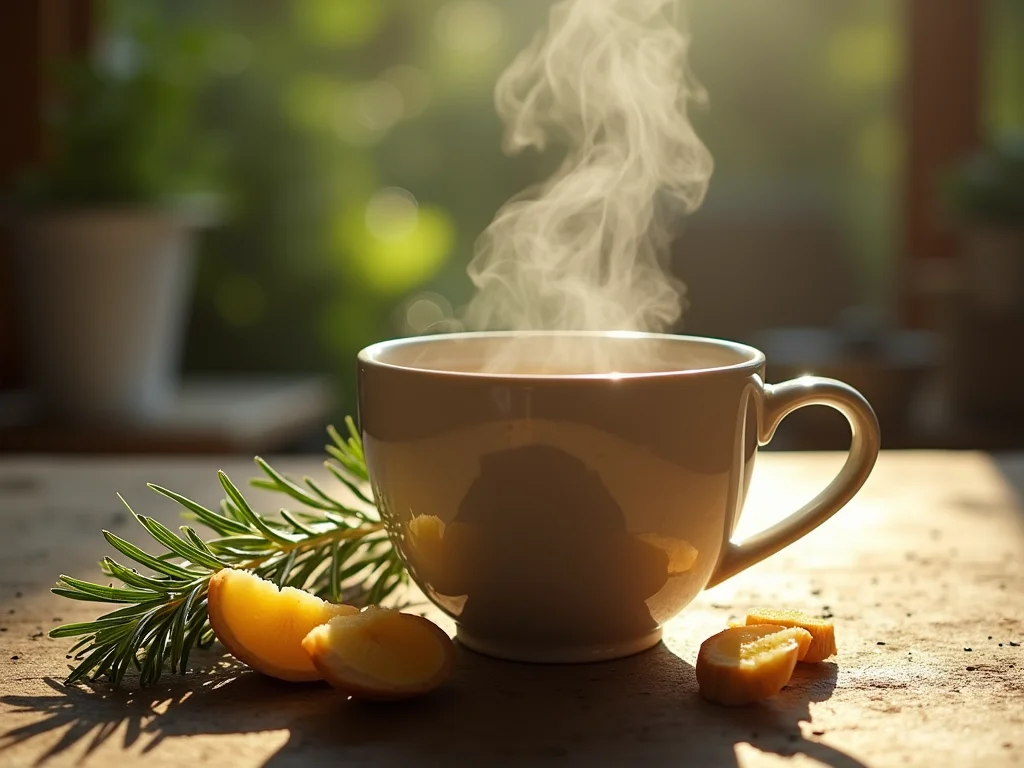 Dica Prática: Para turbinar ainda mais seu chá de alecrim com gengibre, adicione uma rodela fina de limão na hora de servir. O toque cítrico realça os sabores e dá um frescor extra!