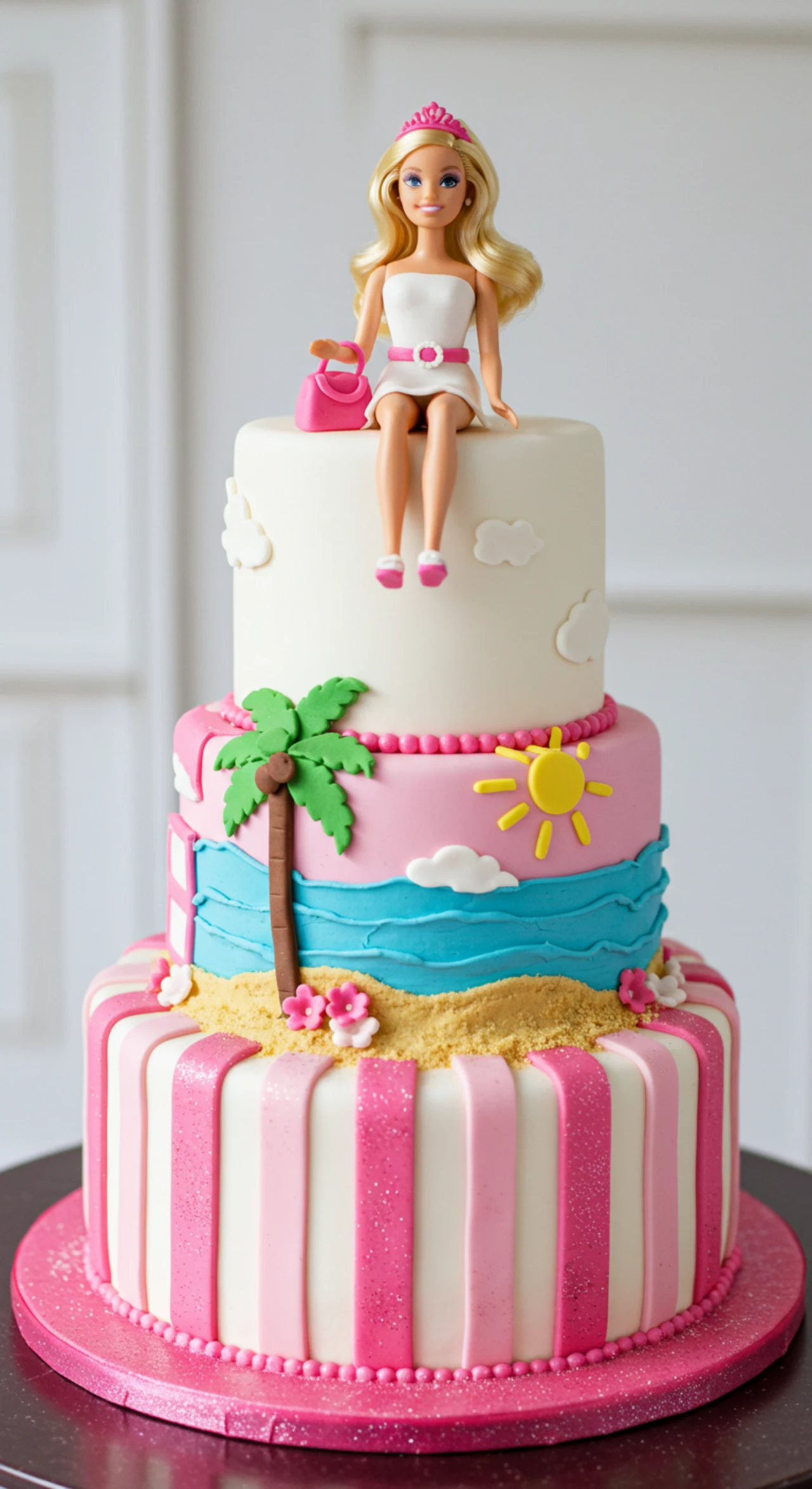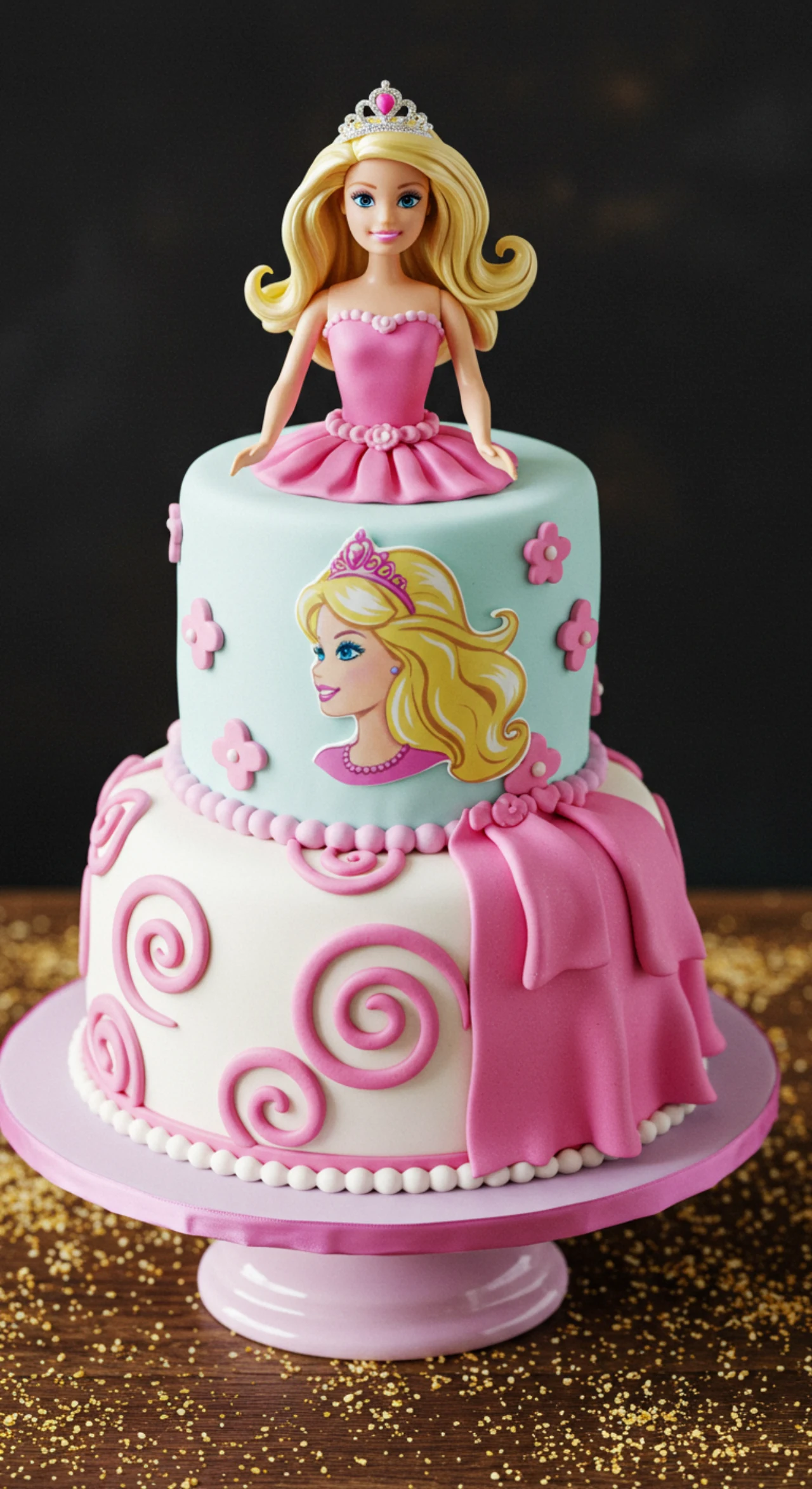 O bolo é o protagonista da festa! Encomende um bolo decorado com pasta americana no tema da Barbie, com detalhes como a boneca, o logo da marca e elementos que remetem ao universo da boneca. Escolha um sabor que agrade a todos os convidados e personalize o bolo com o nome da aniversariante. Uma dica: use um suporte de bolo giratório para facilitar o corte e a distribuição das fatias.