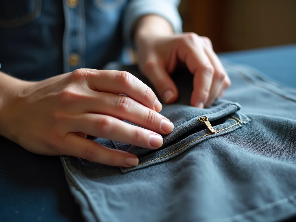 Chegou a hora de dar um toque final no seu bolso embutido. Depois de costurar, é fundamental verificar se todas as pontas estão bem alinhadas e firmes. Uma costura bem feita aqui evita que o bolso fique repuxado ou que comece a descosturar com o uso. Eu gosto de passar a mão em toda a extensão para sentir se não tem nenhuma irregularidade.