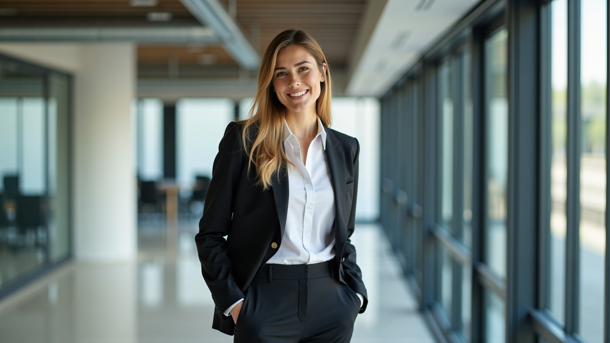 A maquiagem e o cabelo devem complementar o seu look e realçar sua beleza natural. Opte por uma maquiagem leve e discreta, que valorize seus traços sem chamar muita atenção. Uma pele bem feita, um blush suave, um batom nude e um rímel são suficientes para te deixar com um ar saudável e profissional.