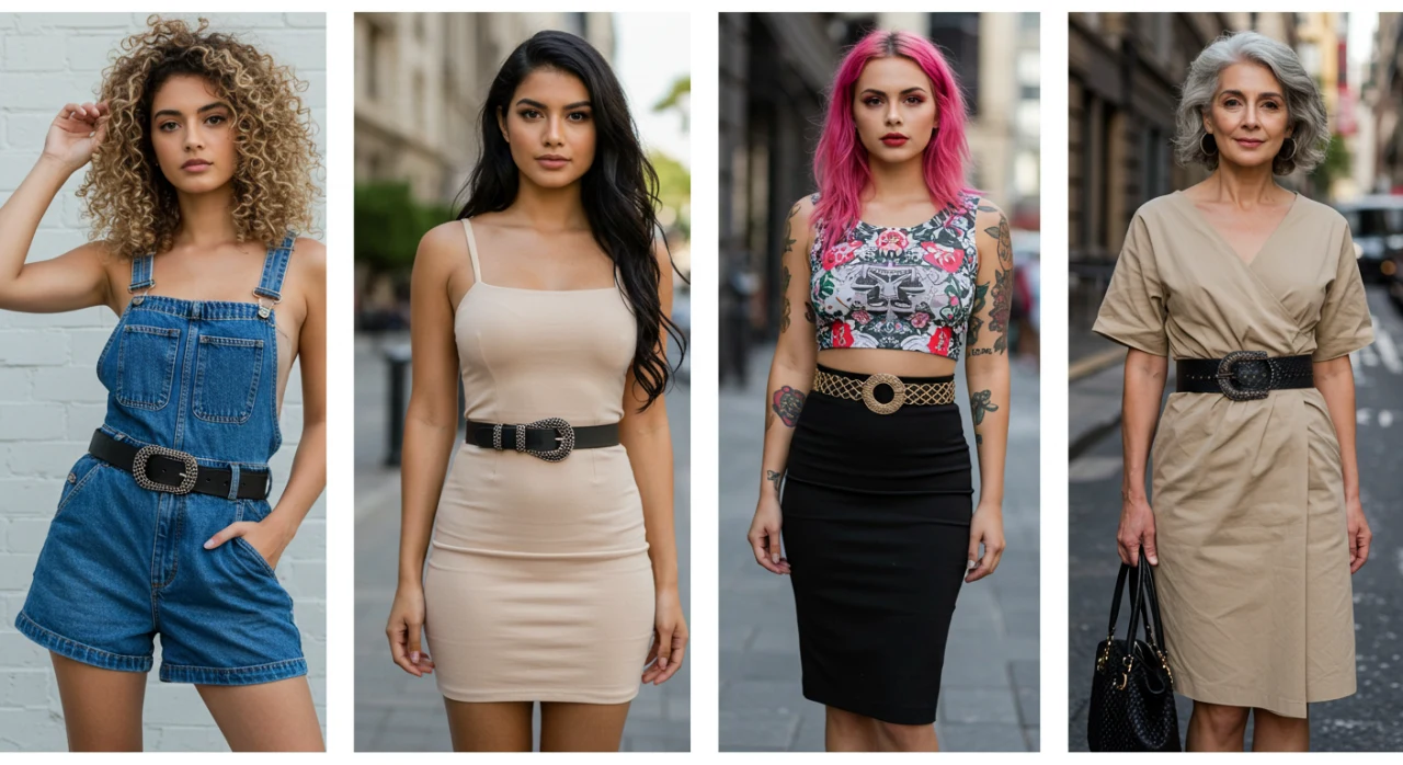 • Corpo Ampulheta (cintura fina ): Se sua cintura já é bem definida, use cintos finos ou médios para marcá-la sobre vestidos e blusas, realçando suas curvas naturais.