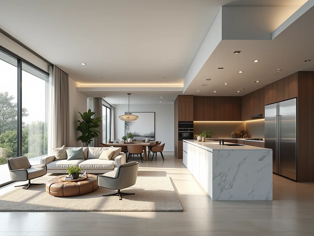 O segredo aqui está no mobiliário. Pense em bancadas que servem de apoio para a sala, ou ilhas que dividem os ambientes de forma elegante. A integração cria fluidez, sabe? Você tá na cozinha preparando um café e consegue ver o filme com a família na sala. E o melhor: a gente ganha mais funcionalidade sem perder o charme.