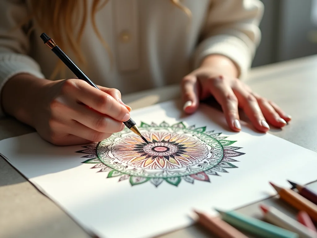 Depois desse começo, a gente começa a preencher os espaços. São as primeiras camadas que dão profundidade. Pode ser com mais círculos concêntricos, com linhas que se repetem ou com formas geométricas simples. O importante aqui é observar como essas formas se relacionam umas com as outras. Elas se complementam? Criam um ritmo? A criação de mandalas é um diálogo entre você e o papel, onde cada traço influencia o próximo.