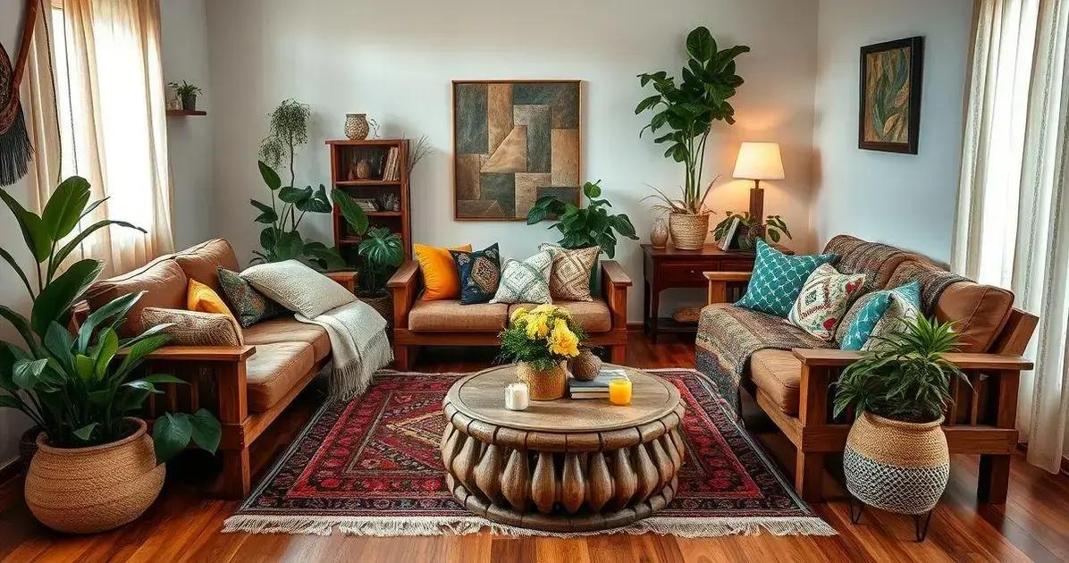 Quais são os elementos essenciais da decoracao boho sala de estar?
