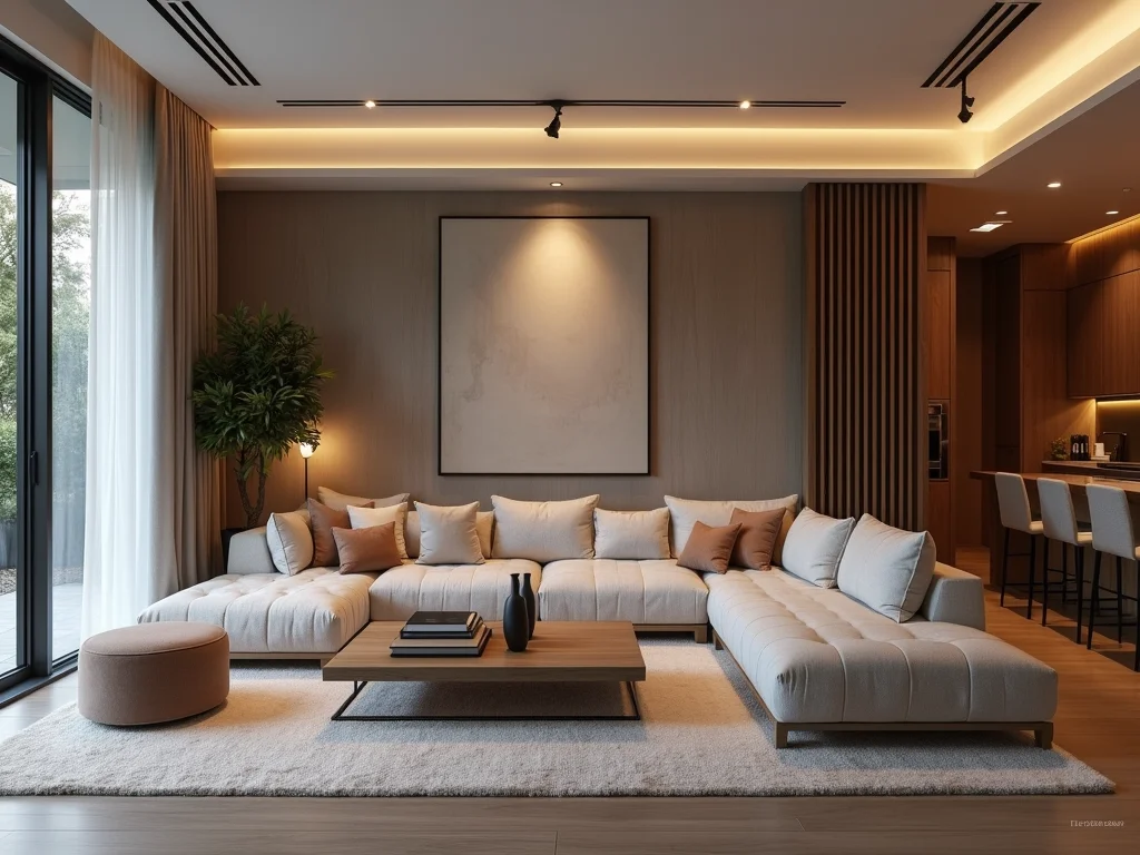 A iluminação indireta é fundamental para criar a atmosfera perfeita na sala de TV. Ela evita o cansaço visual e proporciona um ambiente mais acolhedor. Use fitas de LED discretamente instaladas em sancas, atrás de painéis ou em nichos para um efeito de luz suave e difusa. Isso transforma a experiência de assistir TV, tornando-a muito mais prazerosa.