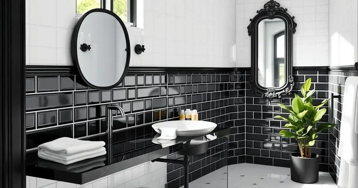 Qual o melhor tipo de espelho para um banheiro preto e branco?