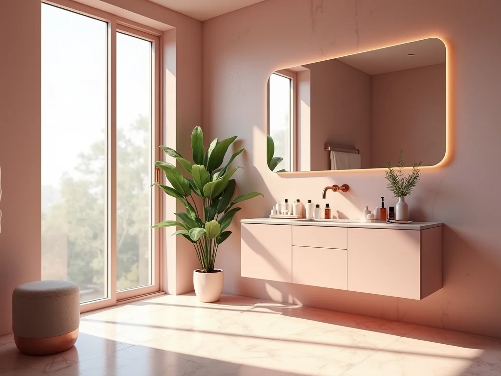 Dica Prática: Se puder, instale um dimmer na luz principal do seu banheiro rosa. Assim, você controla a intensidade e o clima na hora que quiser: mais clara para a maquiagem e mais suave para um banho relaxante.