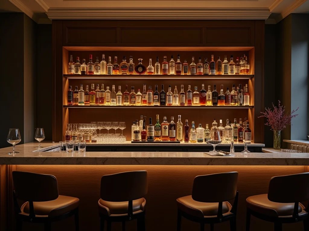 Dica de Ouro: A iluminação faz toda a diferença. Use luzes indiretas, como arandelas ou fitas de LED embutidas nas prateleiras, para criar um brilho suave. Uma luminária pendente sobre o balcão ou carrinho pode ser o ponto focal, adicionando drama e charme.
