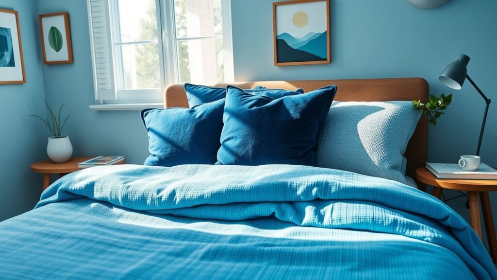 - Troque a roupa de cama: Uma nova roupa de cama azul pode transformar o visual do quarto. Aposte em tecidos confortáveis e estampas que combinem com o seu estilo.