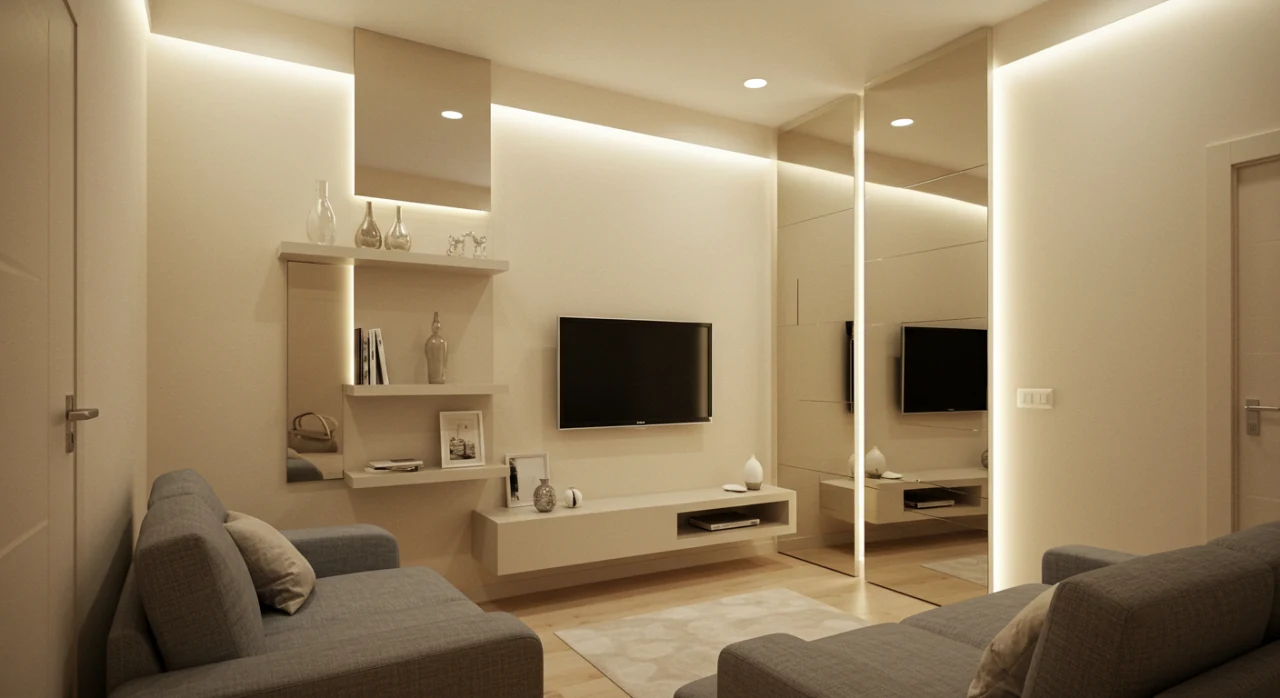 Espelhos estrategicamente posicionados são seus melhores amigos! Eles refletem a luz e criam a ilusão de um ambiente maior. Coloque um espelho grande na parede maior da sala, ou vários espelhos menores em diferentes pontos, para criar um efeito ainda mais interessante.