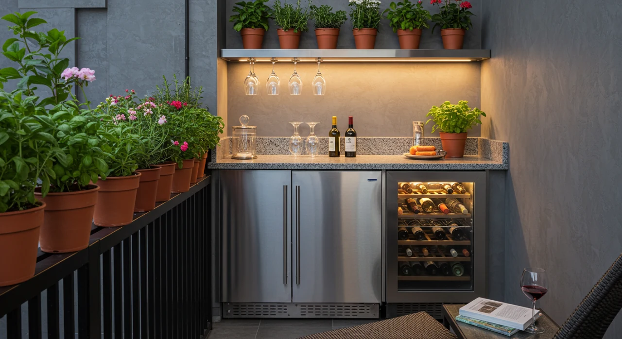 3. Adega ou Cervejeira: Para manter as bebidas na temperatura ideal, uma pequena adega climatizada ou uma cervejeira é um ótimo investimento.