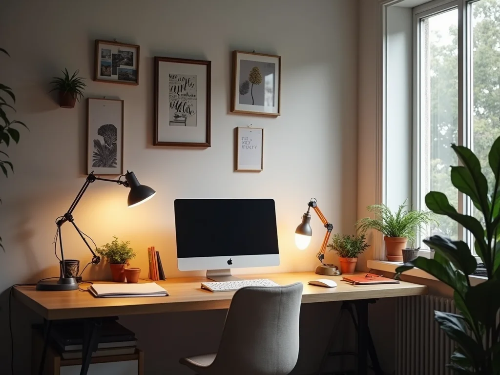 A luz certa é crucial para evitar a fadiga visual e manter a produtividade. Evite posicionar sua mesa diretamente sob a luz solar, pois isso pode gerar reflexos incômodos no monitor. Luminárias articuladas são excelentes para direcionar a luz onde você precisa, e a combinação de luz natural e artificial bem distribuída faz maravilhas.