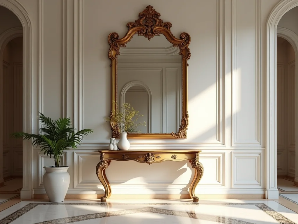 Olha, sabe aqueles espelhos que chamam a atenção logo de cara? São os com molduras trabalhadas. Eles fazem toda a diferença, especialmente para quem quer dar um up no hall de entrada. Não é só um lugar para dar aquela conferida no visual antes de sair, sabe? É a primeira impressão que sua casa passa. Um espelho assim, com uma moldura caprichada, mostra que você tem bom gosto e atenção aos detalhes. Ele adiciona personalidade ao ambiente, transformando um espaço simples em algo mais sofisticado.