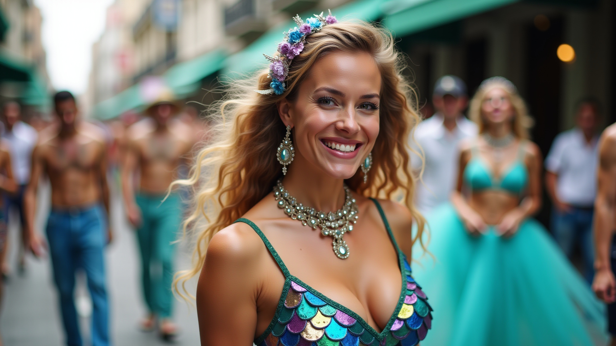 Para o top, use um cropped ou um sutiã e decore com conchas, pérolas e outros elementos marinhos. A make pode ser caprichada, com tons de azul, verde e roxo, e bastante glitter. E para finalizar, uma tiara com conchas e estrelas do mar vai dar o toque final na sua fantasia.