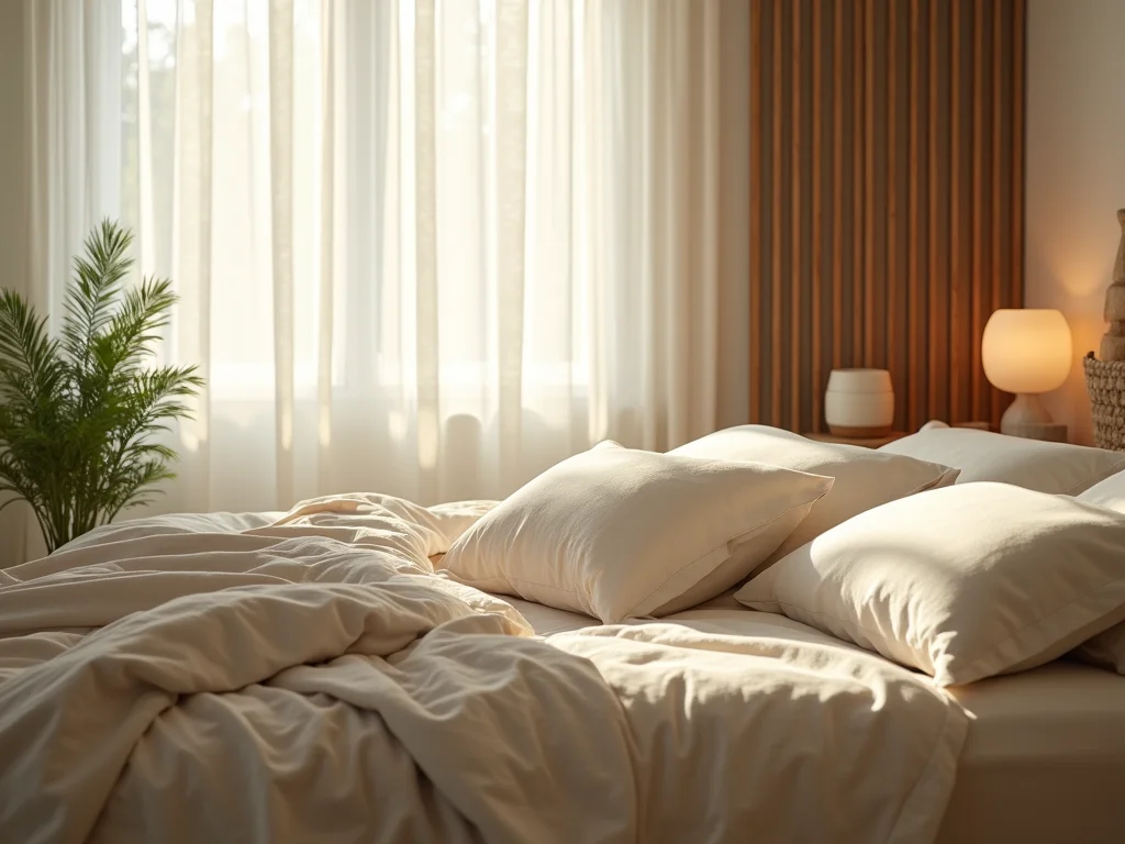 A gente gosta de sentir a vida pulsar suavemente, não é? No quarto, isso se traduz em texturas que não agridem os sentidos. Evite materiais muito ásperos ou brilhantes demais que podem distrair e gerar um certo “ruído” visual e tátil. A ideia é criar uma atmosfera fluida e serena. Tecidos naturais como linho e algodão respiram melhor e contribuem para essa sensação de leveza. Uma cortina de linho, por exemplo, filtra a luz de um jeito suave, criando um clima perfeito.