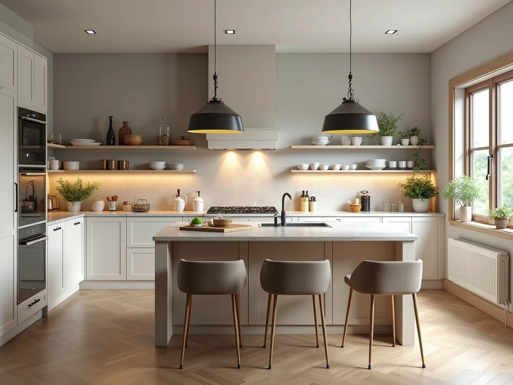- Iluminação em camadas: Combine luz geral com spots direcionáveis e pendentes sobre a bancada para um layout triângulo funcionalidade cozinha mais eficiente.