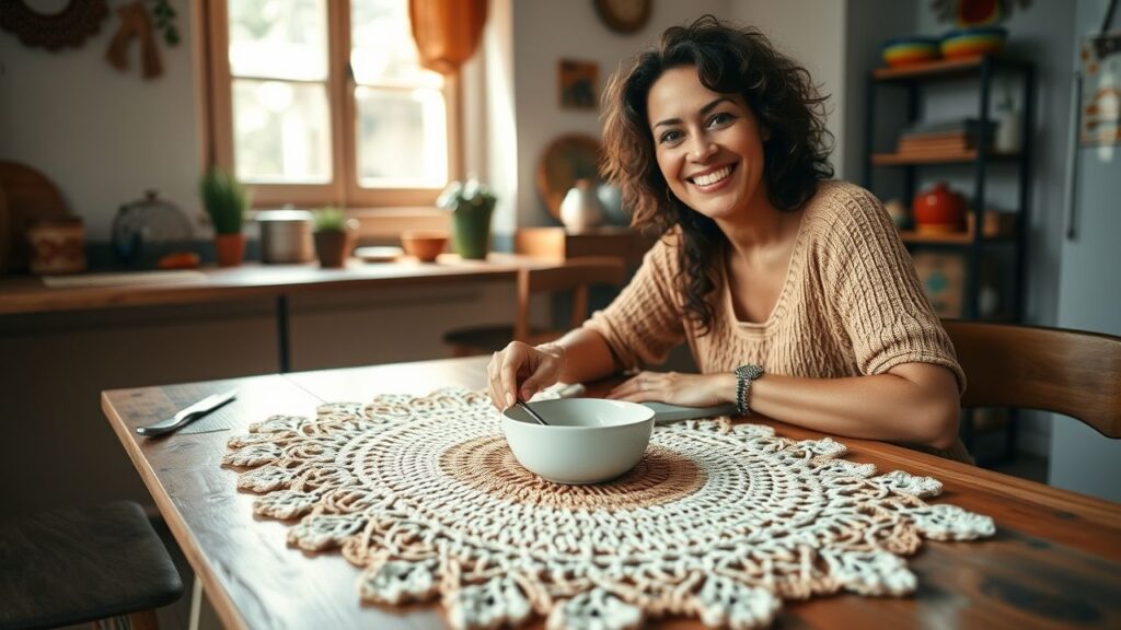 Durabilidade: Com os cuidados certos, seus sousplats de crochê podem durar anos, acompanhando muitos momentos especiais à mesa.