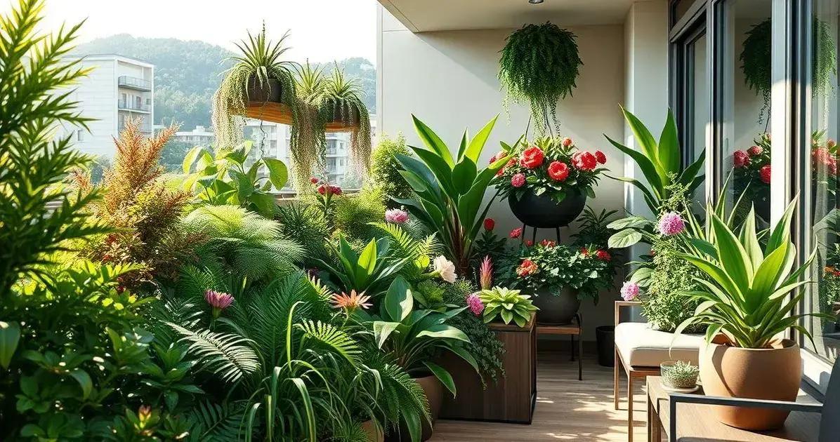 Plantas Escolha plantas adequadas ao clima e à luminosidade da sua varanda. Suculentas e ervas aromáticas são ótimas opções para iniciantes.