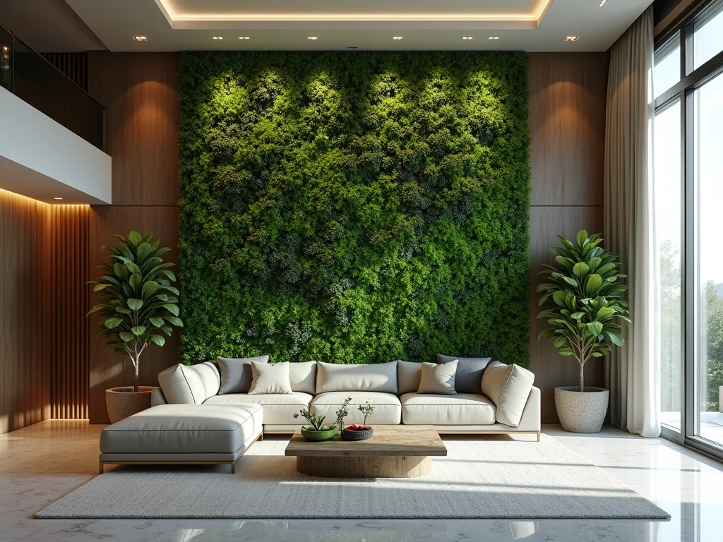 A presença de verde em grande escala, como essa proposta, traz uma energia positiva para dentro de casa. Estudos mostram que o contato com a natureza melhora o humor e reduz o estresse. E com um jardim vertical desse porte, você garante esse benefício diariamente. É mais que beleza, é bem-estar puro.