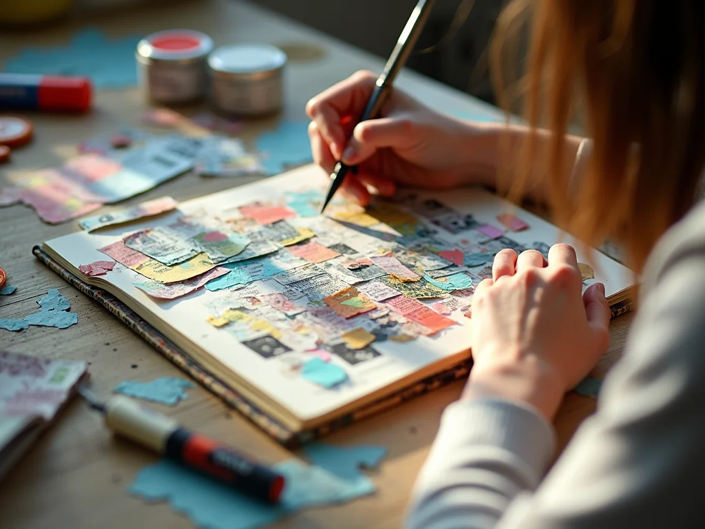 Dica Prática: Comece separando alguns materiais que te agradam, como revistas antigas e papéis coloridos. Não se preocupe com a perfeição; o objetivo é a expressão livre.