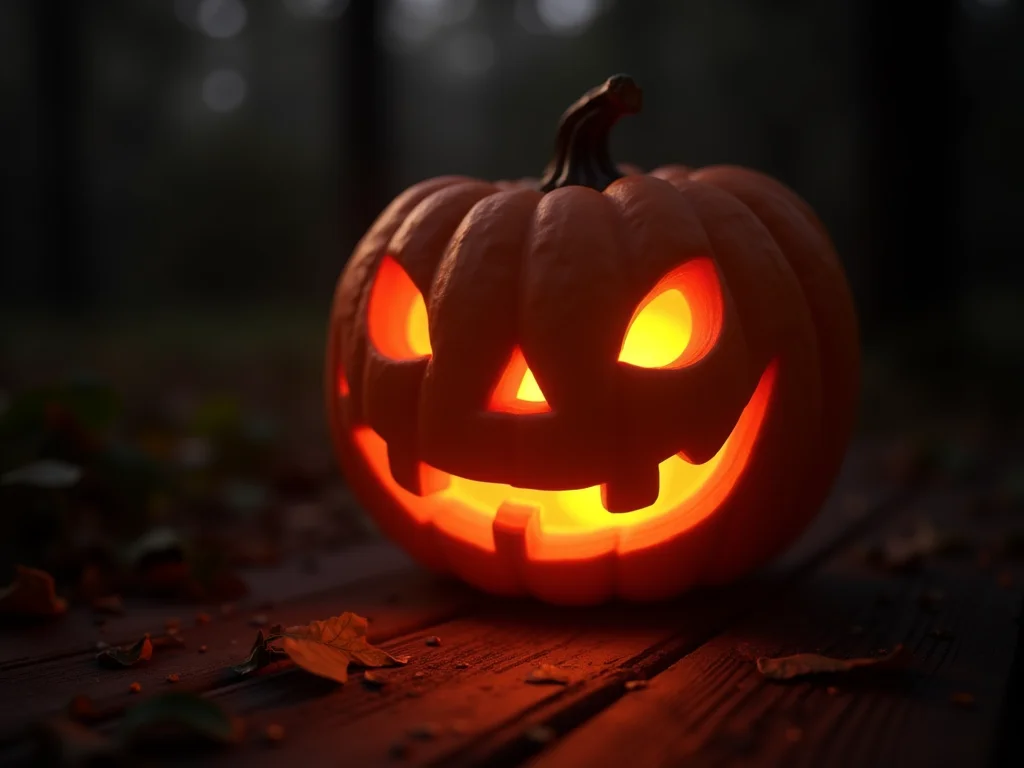 “A Jack-o’-lantern é o símbolo icônico do Halloween, originada de lendas irlandesas com nabos esculpidos, evoluindo para abóboras usadas para ‘afastar espíritos malignos’.”
