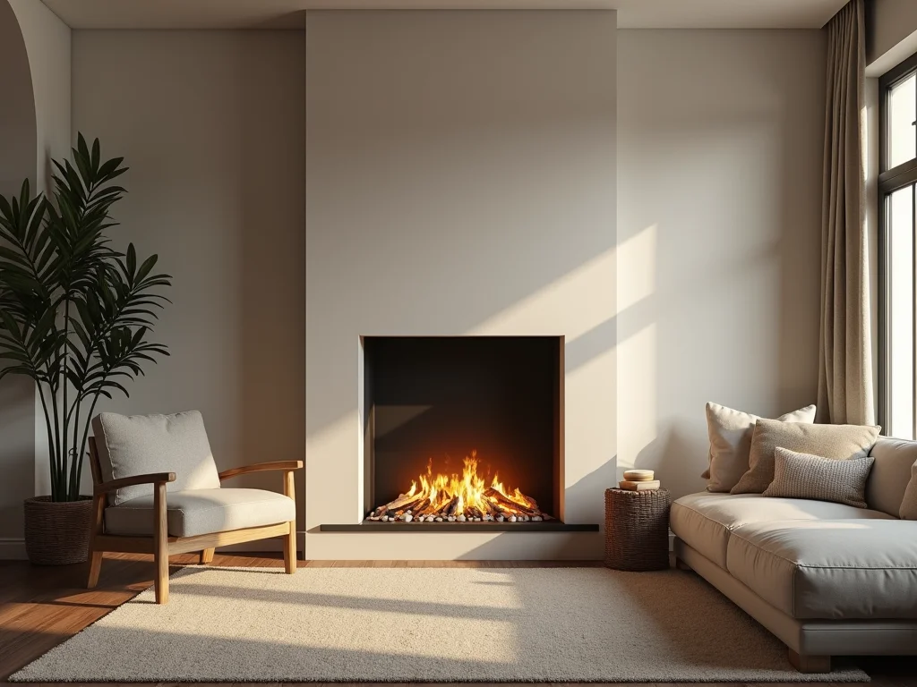 O segredo é criar um contraste elegante. Uma lareira de metal escovado ou aço inox fica deslumbrante em uma parede de tijolos aparentes ou em um nicho de concreto. Se o seu espaço for mais clean e minimalista, uma lareira de embutir com acabamento branco ou preto fosco é a escolha ideal. Minha dica de ouro: use almofadas e mantas em tons complementares para um convite ao aconchego.