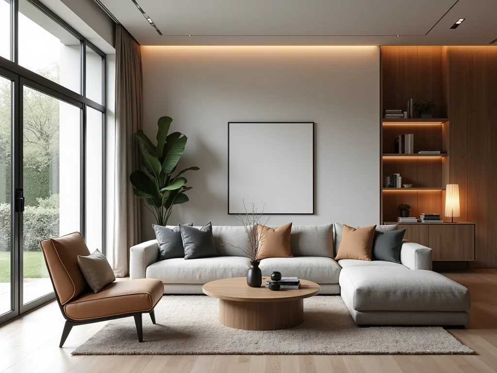 Dica de Ouro: Use um sofá grande posicionado de forma a não bloquear a passagem principal. Uma estante vazada pode servir como divisor de ambientes sutil. A tendência para 2025, o minimalismo, com suas linhas retas e poucos objetos, funciona maravilhosamente aqui, especialmente com painéis de TV simples.