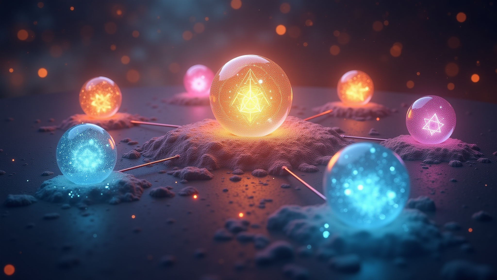 Visualização artística das Leis Herméticas como orbes de energia cósmica, simbolizando a interconexão universal e a sabedoria ancestral.