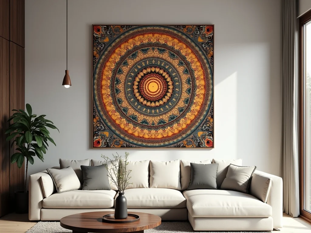 O segredo para um impacto visual poderoso é a escolha do local e do tamanho. Uma mandala grande pode ser o ponto focal de uma sala de estar, enquanto mandalas menores podem adornar corredores ou cantos de meditação. Procure por peças em materiais como madeira, metal ou tecidos, que adicionam textura e sofisticação. Lojas como Amazon Brasil e Mercado Livre oferecem uma vasta seleção.
