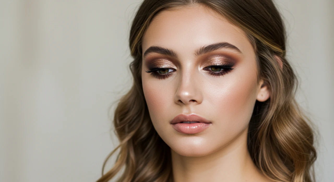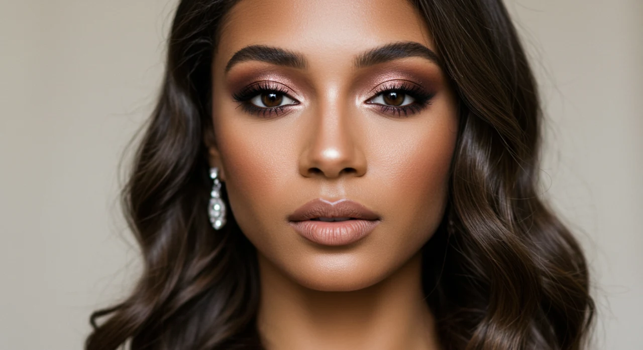 Peles morenas ficam lindas com cores quentes e vibrantes, como dourado, bronze e terracota. Para os olhos, um esfumado marrom com um toque de brilho é perfeito. Nos lábios, um batom nude amarronzado ou um gloss dourado complementam o visual. Abuse do iluminador para realçar o bronzeado natural.