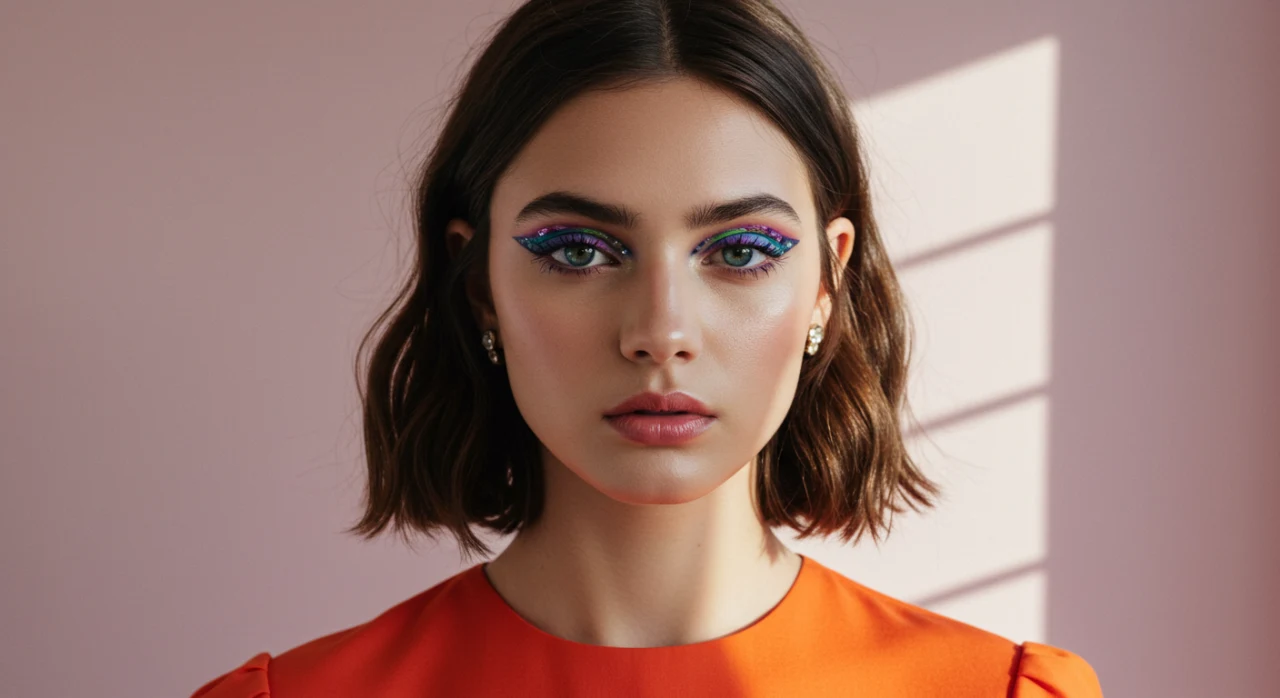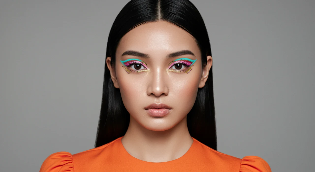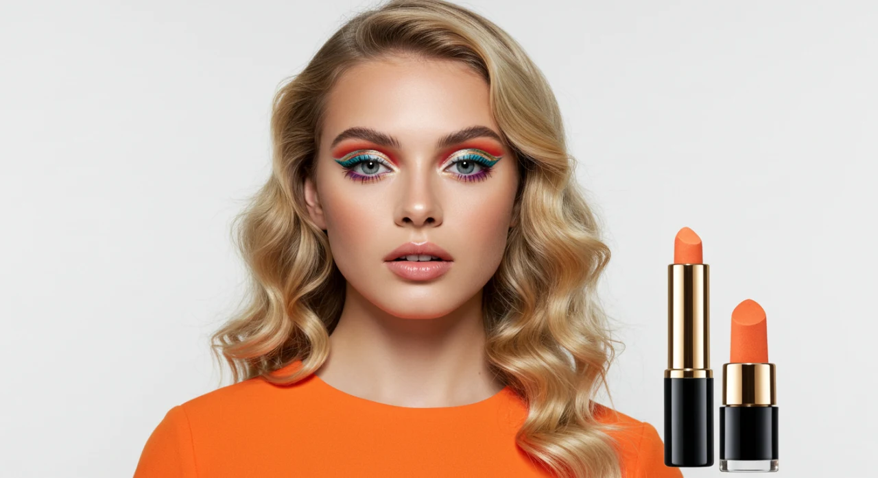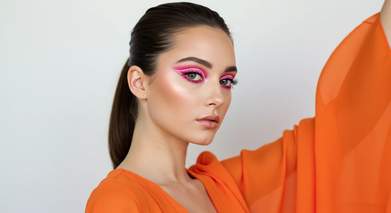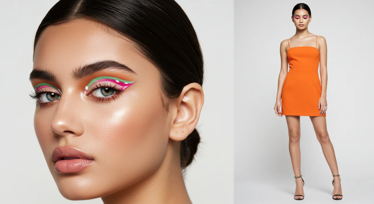 Maquiagem Para Vestido Laranja com Delineado Colorido: Um Toque Divertido