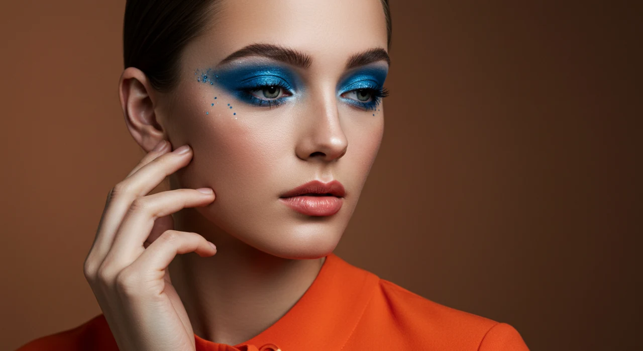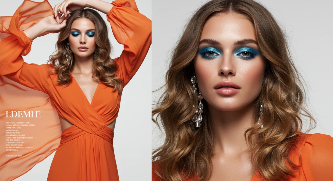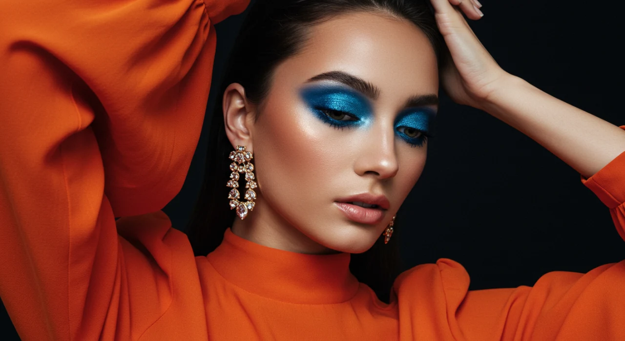 Maquiagem Para Vestido Laranja com Sombra Azul: Contraste Moderno