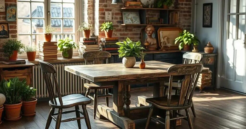 - Mesas de jantar: Com tampos de madeira maciça e pés torneados, as mesas de jantar de demolição são perfeitas para criar um espaço acolhedor e convidativo para receber amigos e familiares.