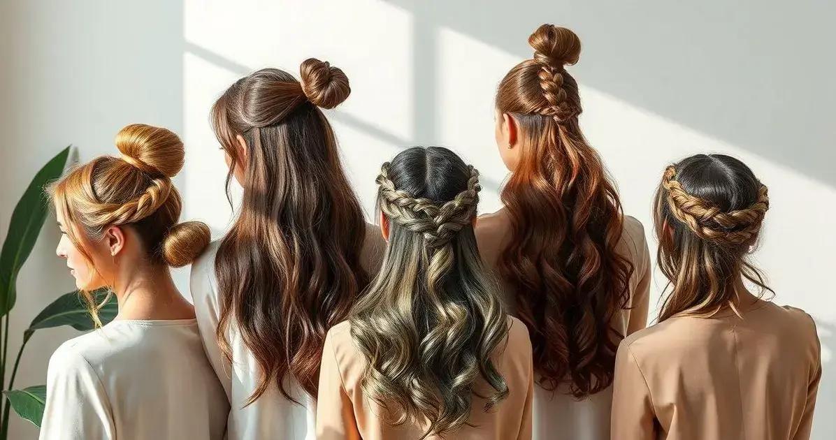 Opções de penteados que valorizam um vestido vermelho, desde coques sofisticados até ondas naturais.