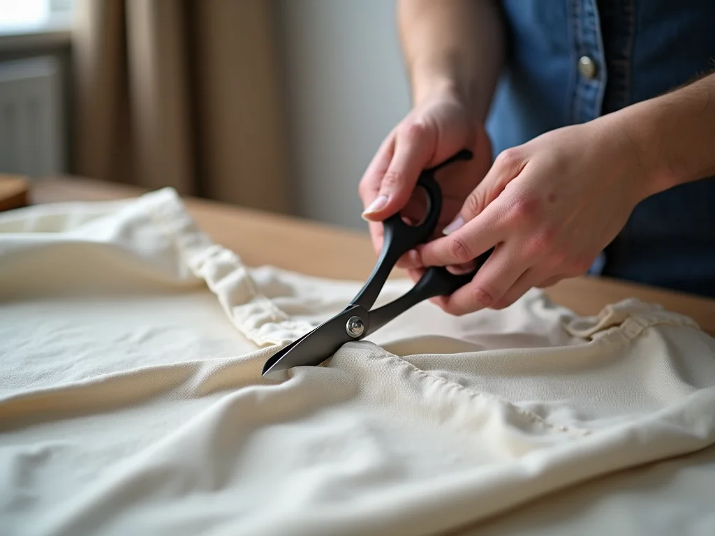 Dica Prática: Use uma tesoura bem afiada e, se possível, um alfinete para marcar onde você quer cortar. Isso evita que o tecido escorregue e garante um corte limpo e preciso.