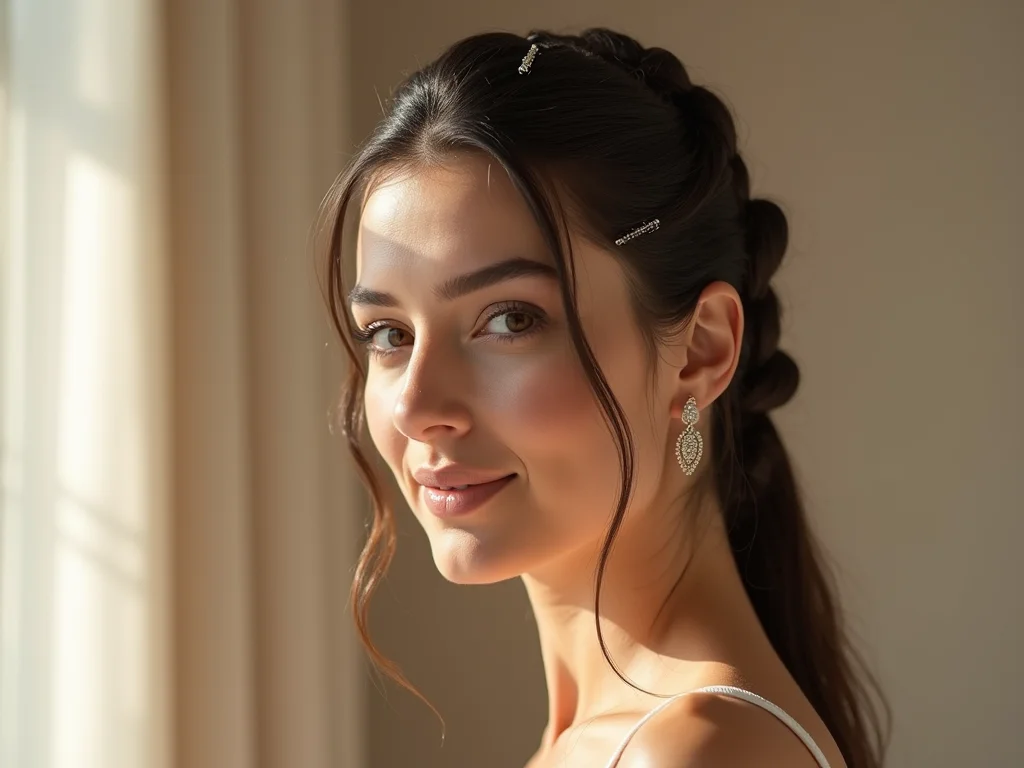 Dica Prática: Para um visual chique, use uma tiara slim metálica e posicione presilhas pequenas e brilhantes logo atrás dela, como se fossem um complemento.