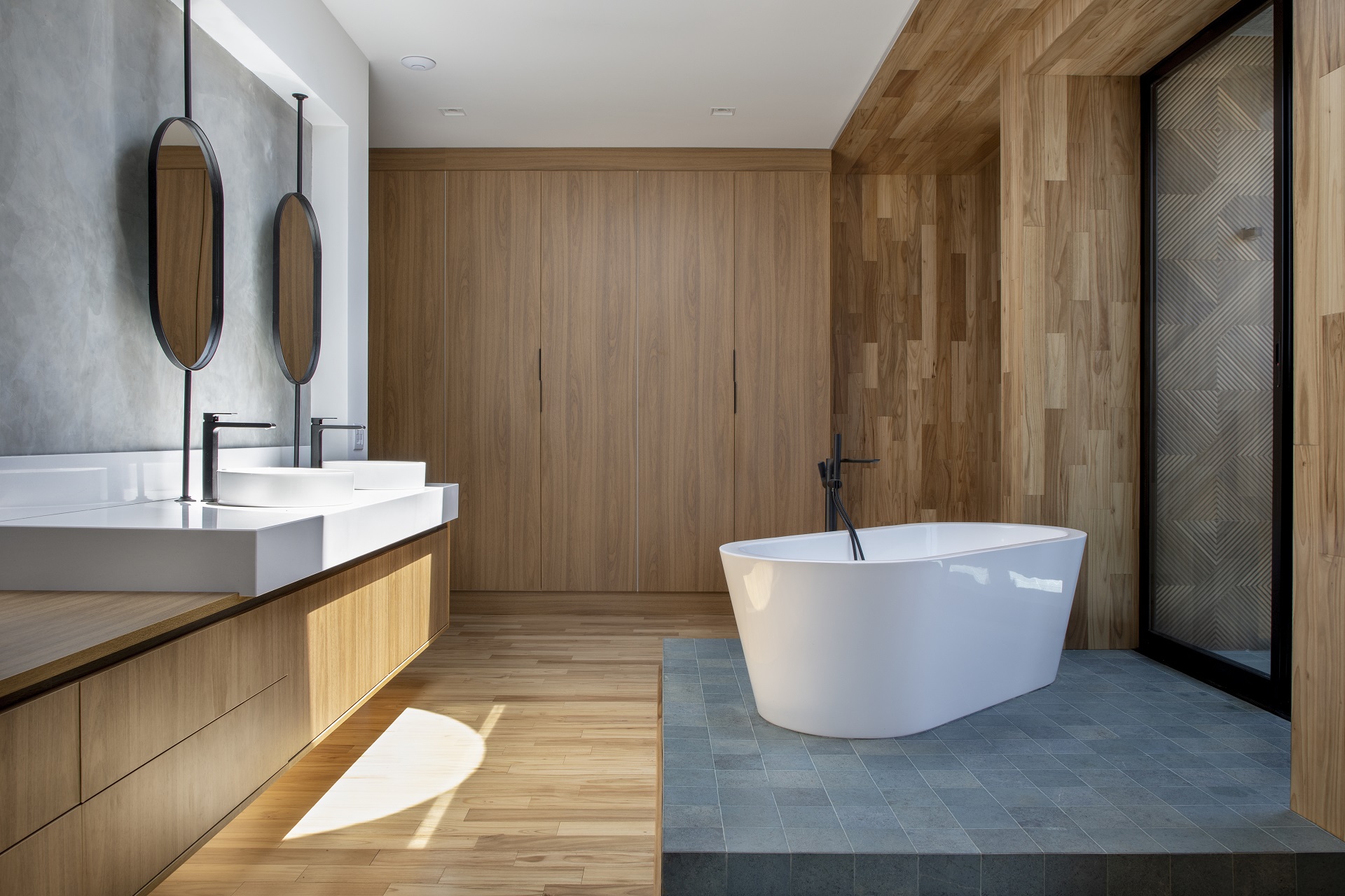 - Aconchego: A madeira aquece o ambiente, tornando o banheiro mais convidativo.