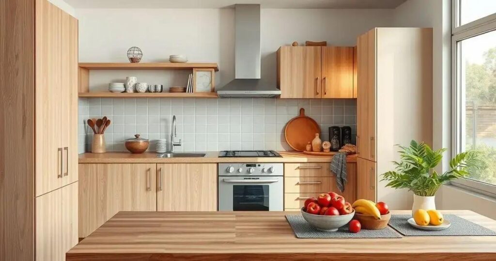 Uma dica de amiga: use madeira em armários e bancadas, pedra em revestimentos e linho em cortinas e panos de prato. Assim, você cria uma cozinha com um toque natural e elegante.