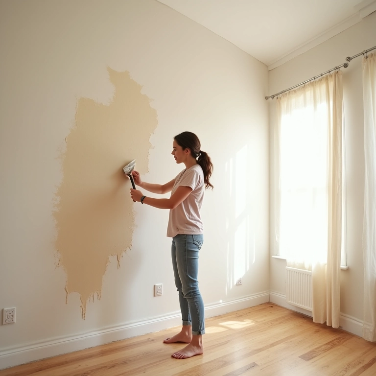 Sabe aquele cantinho difícil de alcançar? Use uma espátula menor para aplicar a massa com mais precisão. E se você não tiver muita prática, comece por áreas menores e menos visíveis, como atrás de móveis ou em cantos.