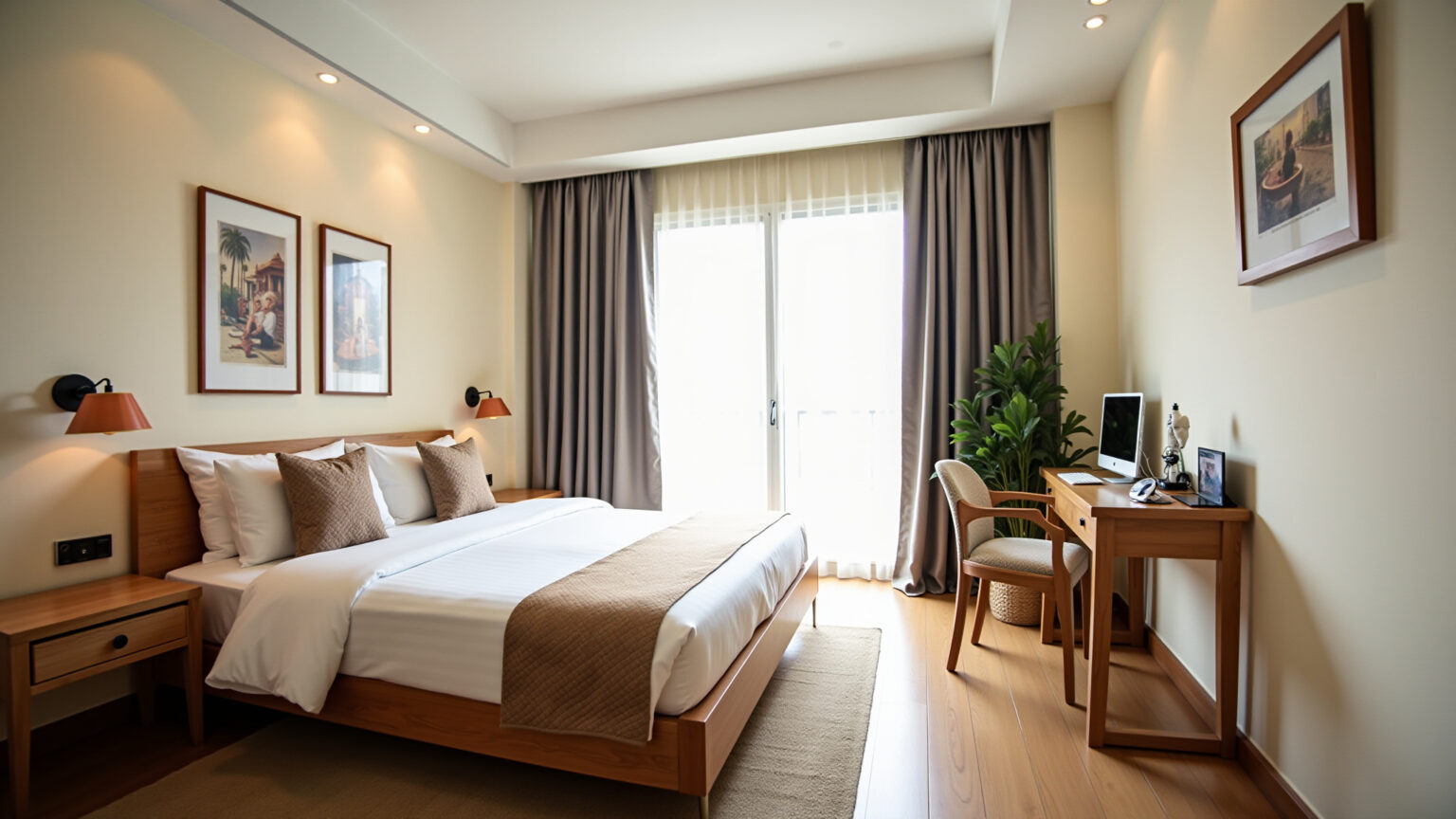 Além da cama, você vai precisar de um armário ou cômoda para que seus hóspedes possam guardar suas roupas e pertences. Uma mesa de cabeceira com abajur também é fundamental. E não se esqueça de oferecer toalhas, roupa de cama e travesseiros confortáveis.