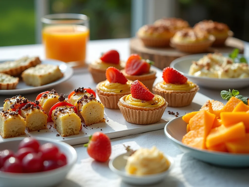 • Variedade de Sabores: Tenha opções doces e salgadas, claro. Mas também inclua algo mais leve, como uma salada de frutas ou mini sanduíches com vegetais. Evite que tudo seja muito pesado.